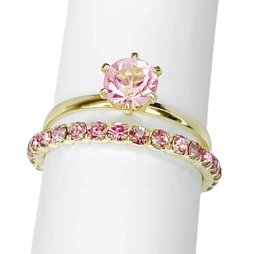 - Cravejado com strass rosa bebê, ideal para complementar alianças ou ser usado sozinho.
