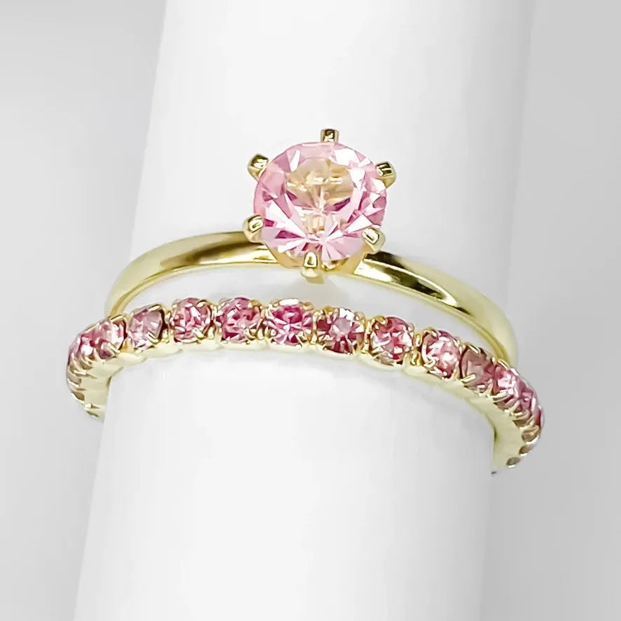 Adicione um toque de elegância e sofisticação às suas mãos com o nosso Kit de Anéis Banhados a Ouro. Este conjunto deslumbrante combina o clássico anel solitário com uma pedra rosa bebê e um delicado anel aparador cravejado com strass na mesma tonalidade, criando a combinação perfeita para ocasiões especiais ou uso diário.